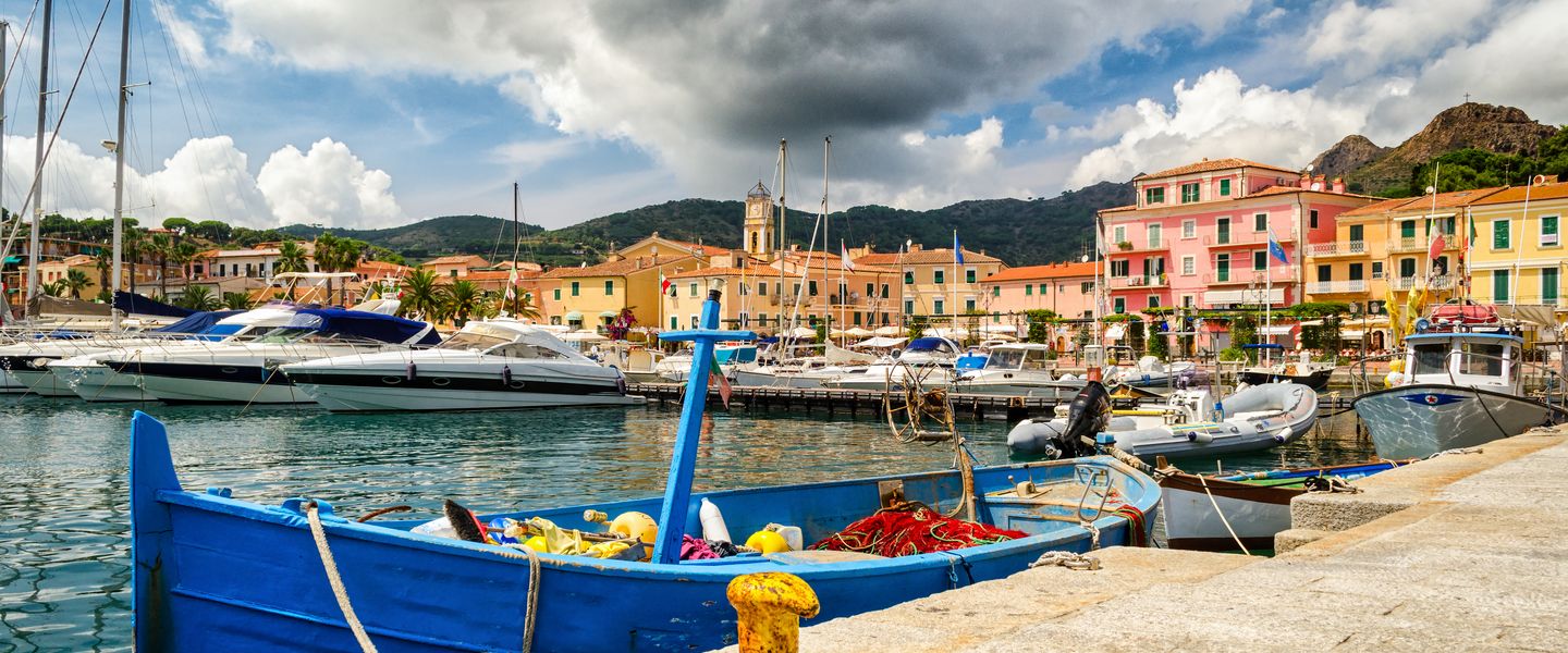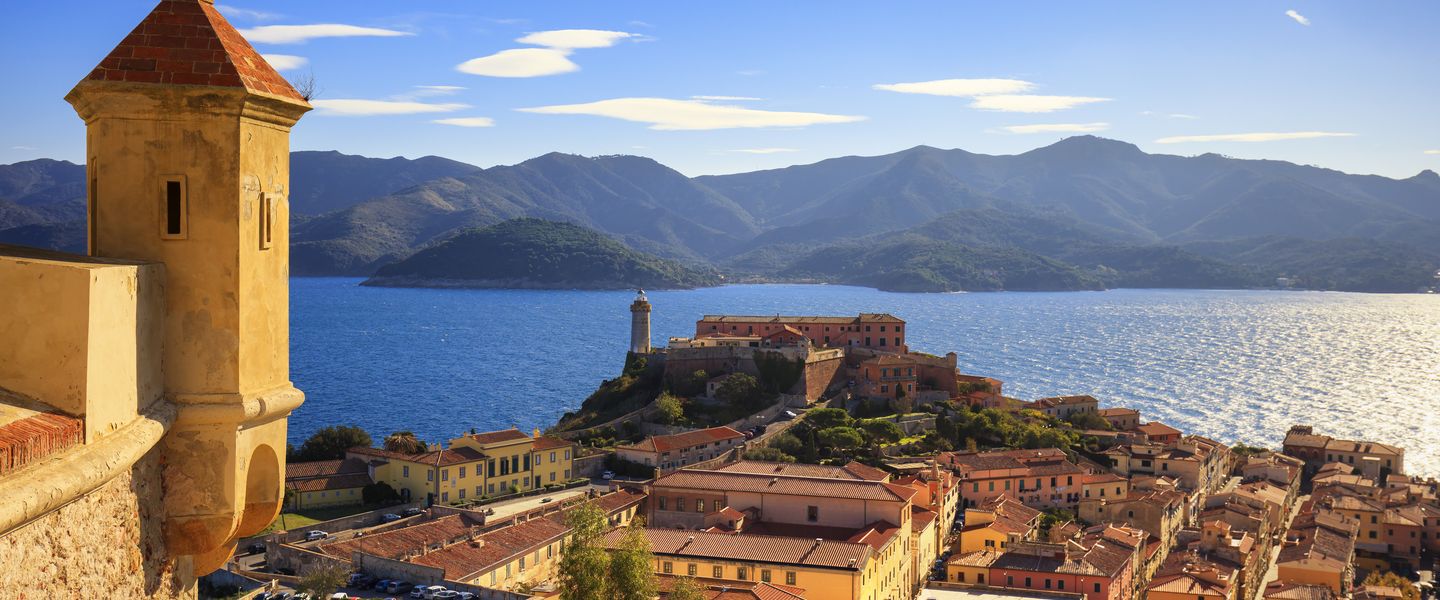 Die Insel Elba, eine grüne Oase im toskanischen Archipel, ist die Insel des unendlichen Horizonts. Goldene Strände, die vom kristallklaren Wasser gestreichelt werden, Granitfelsen inmitten der mediterranen Buschvegetation, Geschichten von Völkern, die immer von der Sonne geküsst wurden.